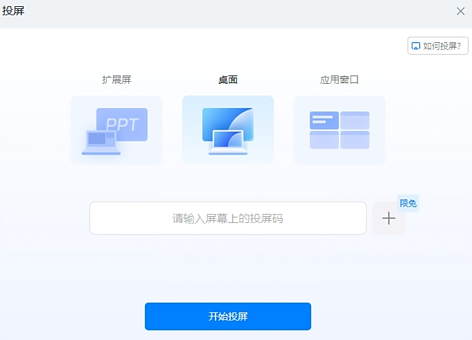 点击【会议】-【投屏】,直接输入屏幕上的投屏码,即可共享电脑和手机上的内容